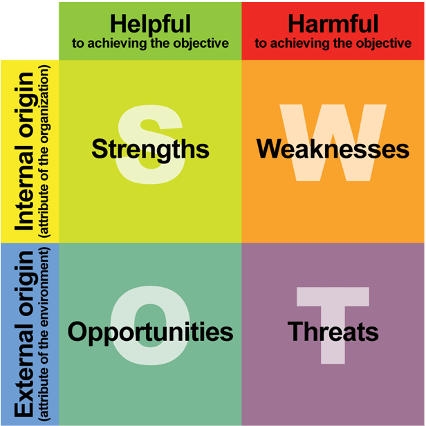- Write the titles (Strengths, Weaknesses, Opportunities, Threats) at the top of each quadrant.